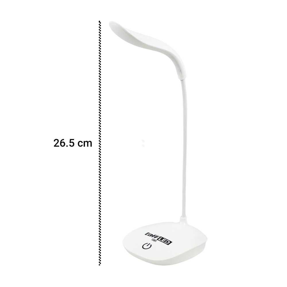 Spesifikasi TaffLED Lampu Meja Belajar Desk Lamp USB 14 LED - T301 Jumlah LED : 14 LED Voltase : Input: DC 5V / 0.5A Tipe Baterai : Li-Ion Kapasitas Baterai : 800 mAh Material : Silikon Plastik Dimensi : 12 x 10 x 26.5 cm