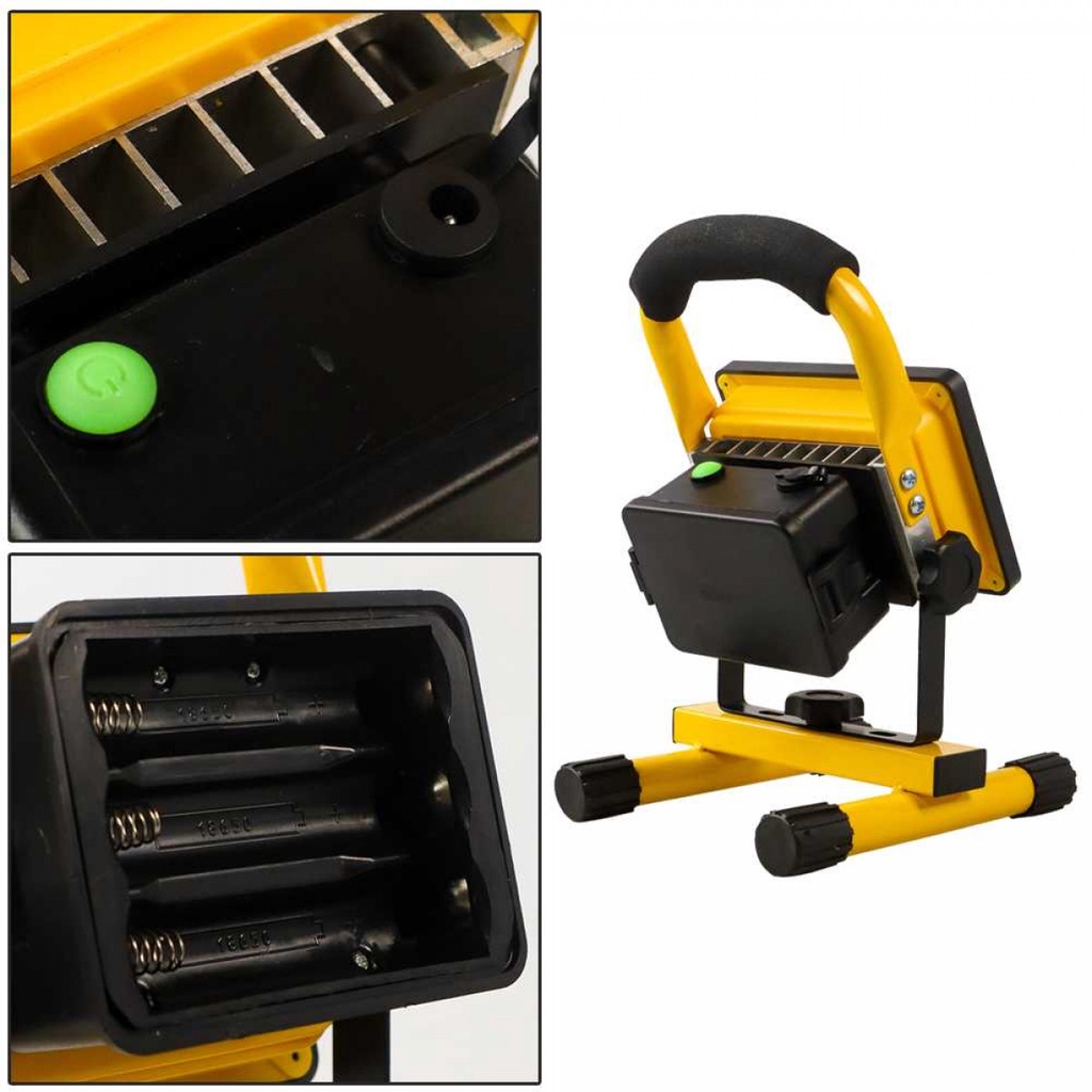 Adaptor Daya atau Baterai Lampu ini dapat digunakan dengan menghubungkan adaptor ke badan lampu. Tidak hanya itu, lampu sorot ini juga dapat ditenagai menggunakan 3 buah baterai 18650 sehingga dapat dibawa-bawa dan diletakkan di mana saja tanpa terbatas kabel power.