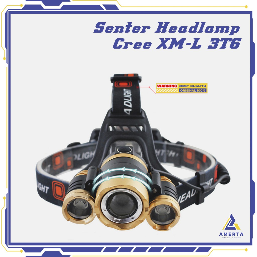 3 x Cree XML T6 Headlamp ini menggunakan 3 buah Cree XML T6 yang dapat menghasilkan cahaya hingga 10000 lumens.