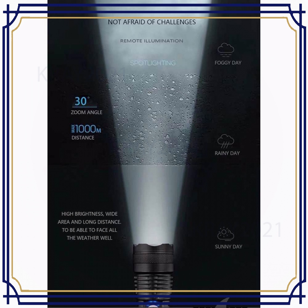 Desain Tahan Air Tidak hanya lampu yang terang, senter ini juga memberikan fitur waterproof. Anda pun tidak perlu khawatir senter akan rusak karena mampu menahan percikan air dan hujan ringan.