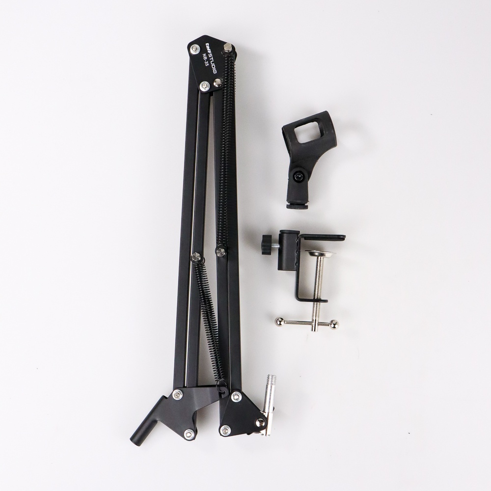 Penyangga mikrofon ini dapat dilipat dan diatur sudut yang sesuai dengan kenyamanan pengguna pada saat digunakan. Berkat mounting dengan desain clamp, penyangga mikrofon ini dapat Anda pasang pada meja ataupun tiang.