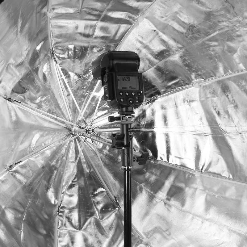 Payung studio ini berfungsi untuk merefleksikan cahaya dari lampu flash sehingga lebih merata dan tidak ada hotspot cahaya. Bagi Anda yang ingin membuat foto studio wajib untuk memiliki payung studio ini untuk menghasilkan foto yang profesional. Selain itu payung ini juga dilengkapi dengan kain penutup sehingga dapat dijadikan softbox. Fitur Reflective/Softbox Umbrella Digunakan seperti reflektor atau diffuser tergantung keinginan anda. Dengan menggunakan ini maka anda akan mendapatkan cahaya yang soft dan rata. Softbox ini sangat menghemat waktu dalam setting softbox sebagaimana biasanya. Karakter cahaya yang dihasilkan softbox lembut seperti diffuser, dengan intensitas yang lebih kuat karena pantulan sinar ditahan dan dikembalikan oleh sisi reflektor. Kelebihan lain pada penggunaan softbox adalah minimnya bocoran cahaya.