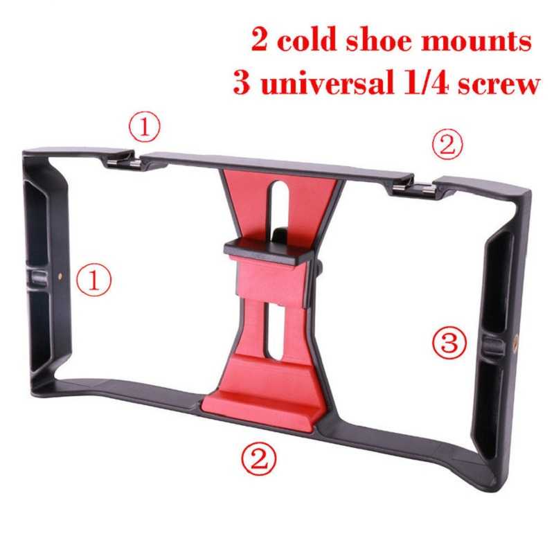 Rig stabilizer ini digunakan untuk smartphone dengan ukuran 4 hingga 7 inch. Dengan rig stabilizer ini, Anda dapat merekam video dengan lebih stabil seperti profesional. Rig stabilizer ini juga memiliki 2 buah cold shoe dan 3 buah slot baut 1/4 inci untuk menghubungkan berbagai macam aksesoris kamera lainnya. Fitur Holder Smartphone Pada bagian tengah rig stabilizer ini terdapat holder smartphone yang menggunakan sistem clamp atau jepit, sehingga dapat memuat berbagai ukuran smartphone mulai dari 4 hingga 7 inch. Penjepit ini menggunakan alas karetsehingga tidak akan merusak smartphone Anda. Slot Aksesoris Tidak hanya smartphone, rig stabilizer ini juga mampu menampung hingga 5 macam aksesoris kamera lainnya. Anda bisa memanfaatkan 2 slot cold shoe di atas ataupun 3 slot baut 1/4 inci untuk meningkatkan kualitas perekaman. Pegangan yang Nyaman Rig stabilizer ini memiliki pegangan yang nyaman. Panjang pegangan ini sekitar satu genggaman tangan orang dewasa normal, sehingga Anda dapat mengenggam rig stabilizer dalam waktu yang lama tanpa masalah.