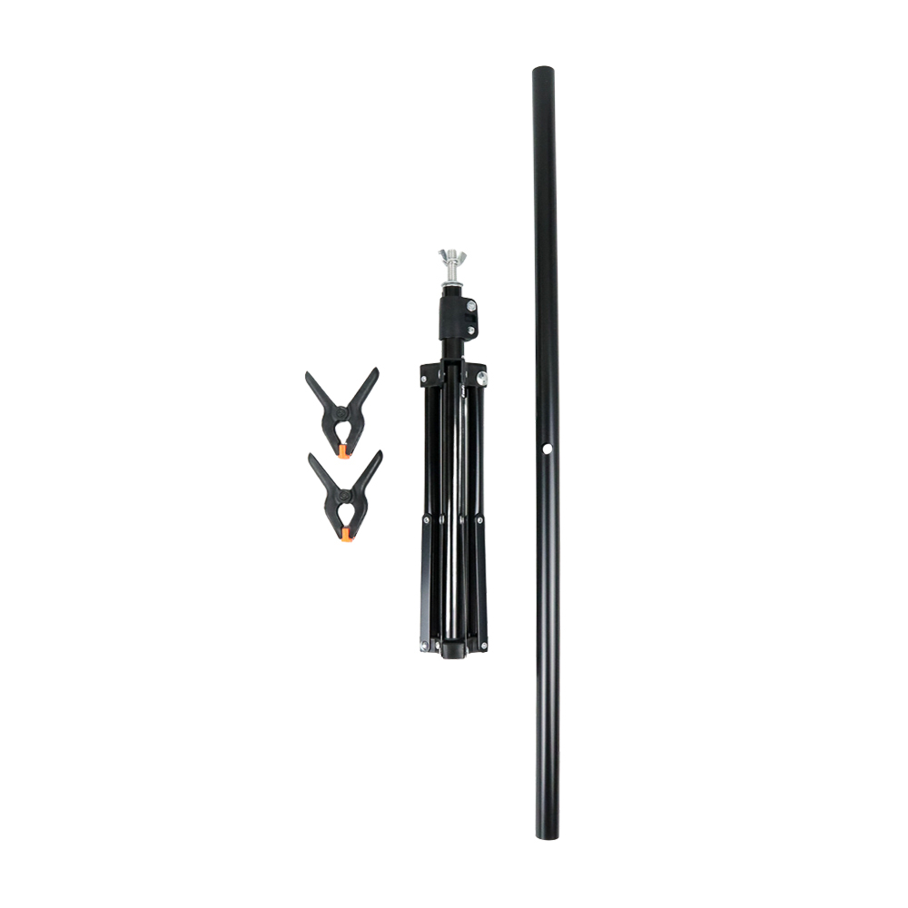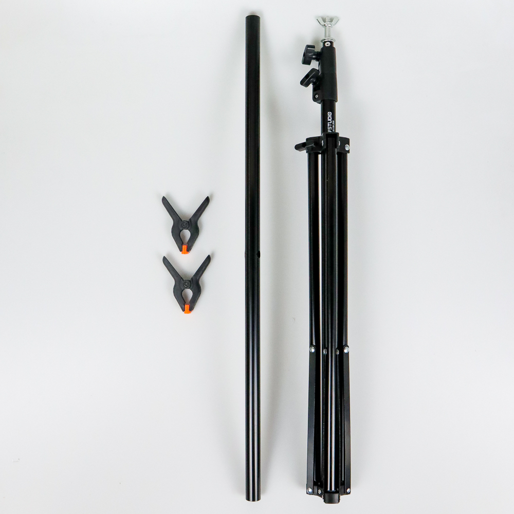 Fitur Stand Background Multifungsi Anda dapat menggunakan greenscreen ataupun kain background berbagai warna pada stand ini. Dengan clamp, Anda dapat mengatur posisi jepitan kain ke tiang penyangga.