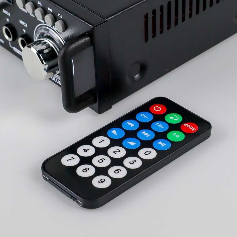 Audio amplifier ini cocok digunakan untuk melengkapi audio sistem rumah Anda. Dengan amplifier ini suara speaker menjadi lebih jernih, bertenaga dan Anda dapat mengatur bass dan treble dari speaker Anda. Amplifier ini juga menerima input microphone sebanyak 2 buah sehingga dapat digunakan sebagai amplifier karaoke.