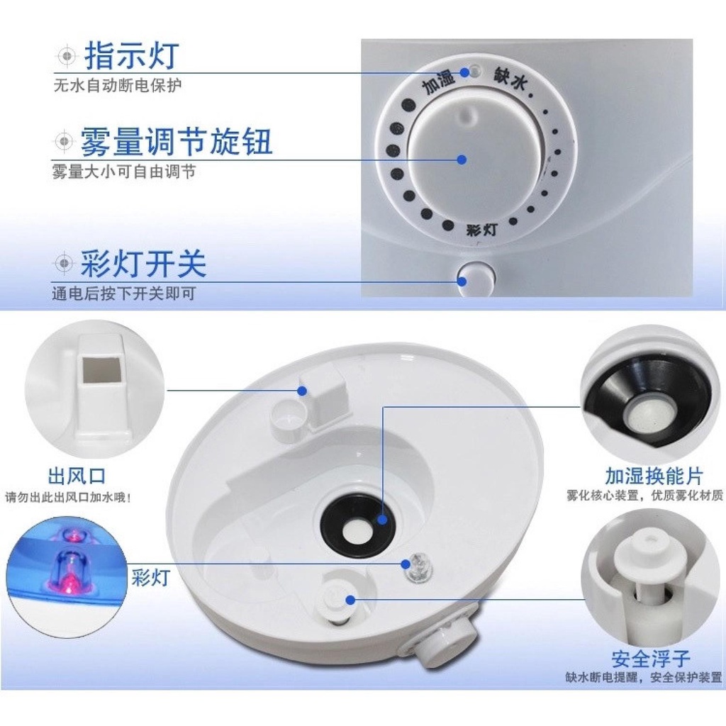 Humidifier ini hadir dengan design seperti tetesan air. Dapat menampung hingga 3 liter air sehingga dapat digunakan untuk waktu yang lama dalam sekali isi ulang air. Juga dilengkapi dengan knob kontrol untuk mengatur kuantitas uap air yang keluar. Ada sedikit perbedaan warna antara fisik dengan foto karena efek cahaya foto. Fitur Uap Natural Alat ini akan mengeluarkan mouisture air yang membuat udara tetap terjaga kelembabannya terutama diruangan ber-AC.