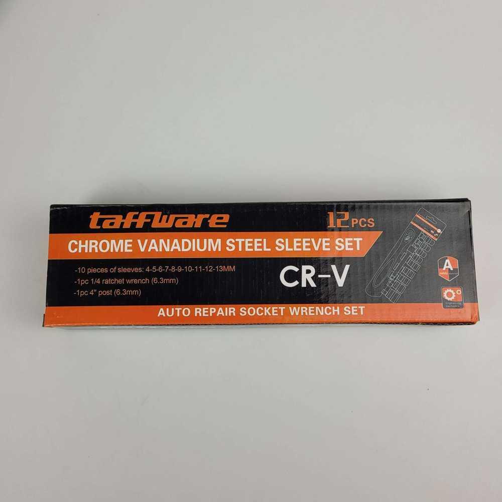 Spesifikasi Taffware Kunci Pas CR-V Drive Socket Wrench Set 1/4 Handle 12 PCS Material : Chrome Vanadium Steel dan ABS Dimensi : Kunci: 150 mm