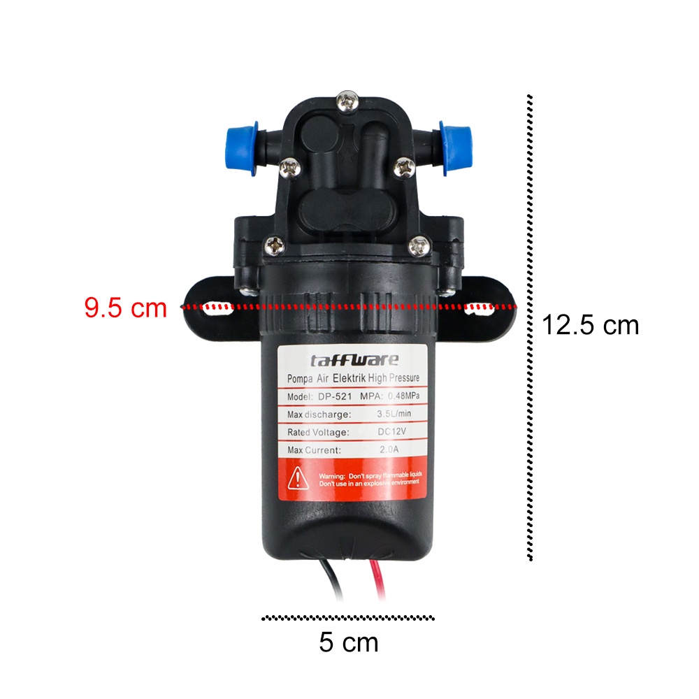 PACKAGE CONTENTS 1 x Taffware Pompa Air Elektrik High Pressure 12V 70PSI 3.5L/min - DP-521