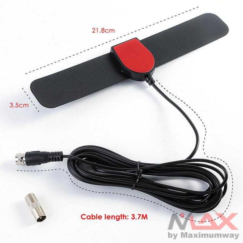 Antenna penguat sinyal untuk digital TV DVB-T2 ini memiliki bentuk yang sangat tipis hanya 0.02 inch sehingga dapat ditempel pada tembok rumah. Dapat menangkap sinyal channel VHF dan UHF TV dengan sempurna. Cocok digunakan sebagai antena indoor karena bentuknya yang tipis dan dapat ditempel di dinding dengan 3M Sticker adhesive nya. Menariknya lagi, antena TV Digital ini juga mampu menangkap siaran digital lokal seperti TVRI, RCTI, Metro TV, Berita Satu, Net, dan sebagainya.Fitur VFH dan UHF TV Channel Antenna ini dapat menangkat sinyal TV VFH dan UHF dengan sempurna. Sinyal Hingga 50 Miles Dapat menangkat sinyal siaran TV Digital hingga jarak 50 miles. Desain Tipis Memiliki bentuk yang sangat tipis hanya 0.02 inch. Dengan menggunakan sticker adhesive, Anda dapat dengan mudah menempel antena ini di dinding, jendela, meja dan tempat-tempat lainnya. Kabel 3 Meter Antena ini memiliki kabel sepanjang 3 meter sehingga Anda dapat meletak antena ini pada posisi yang kuat sinyal.
