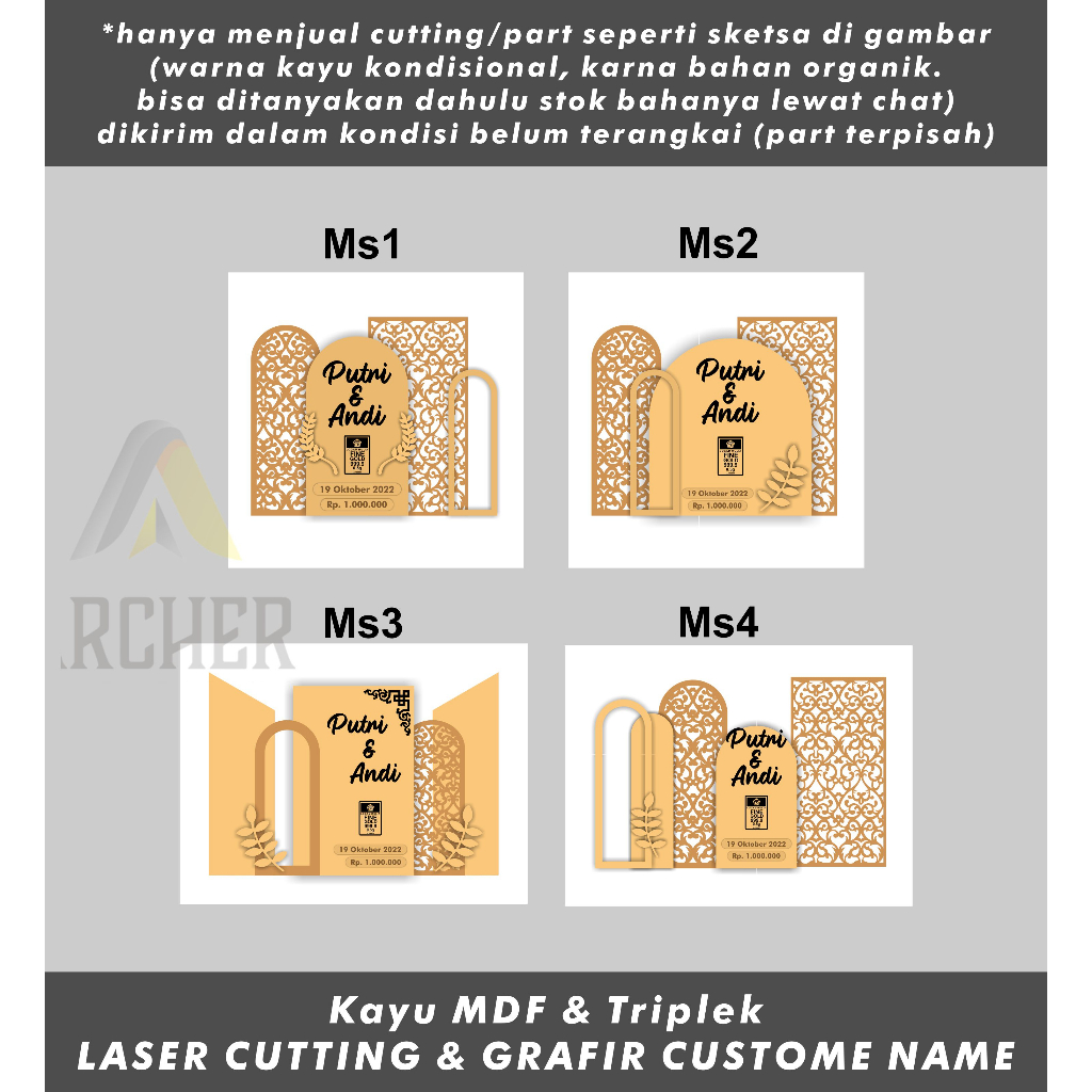 Detail TAG WOOD MAHAR SET CUSTOM NAMA, TANGGAL, NOMINAL, LOGAM MULIA.