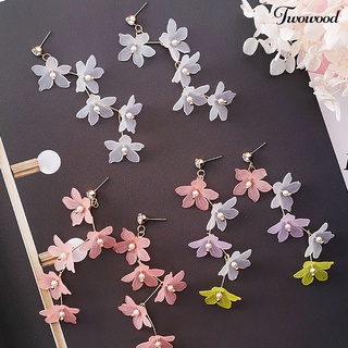 1 Pasang Anting Kait Rumbai Desain Bunga Aksen Mutiara Berlian Imitasi Bahan Akrilik Untuk Hadiah