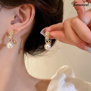 1 Pasang Anting Klip Bentuk Kupu-Kupu Geometris Bulat Aksen Mutiara Tiruan Kilau Untuk Aksesoris