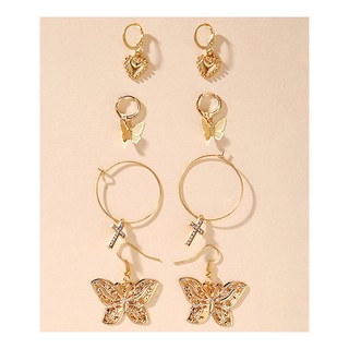6pcs/set butterfly earring set Anting Tusuk Kristal Hati silver Untuk Aksesoris Perhiasan Wanita