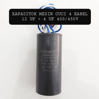 KAPASITOR MESIN CUCI 12+4UF 400/450V 4 KABEL 12 UF + 4UF