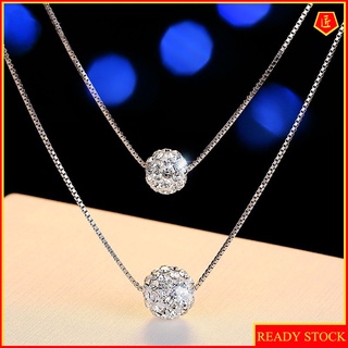 [Ready Stock]Double-Layer Shambhala Rhinestone Ball Necklace Women 's Simple Fashion Lucky Beads