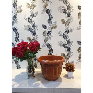 Pot Bunga Bulat Coklat Cokelat Plastik Bermotif Diameter 33 cm