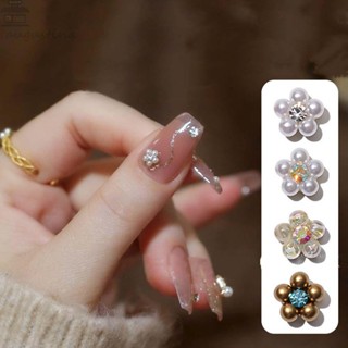 AUGUSTINA Agustina 3D Kuku Charms DIY Fashion Mutiara Imitasi Manicure Alloy Bunga Perhiasan Kuku