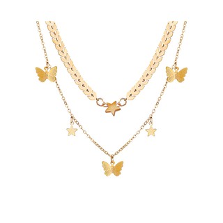 LRC Kalung Fashion Golden Butterfly Pentagram Leaf Chain Multi-layer Necklace K25194