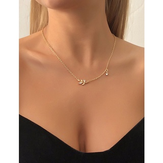 LRC Kalung Fashion Golden Single Layer Micro-inlaid Geometric Leaf Necklace V82154