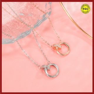 Kalung Rantai Sterling Silver 925 Dengan Liontin Cincin Ganda Untuk Wanita