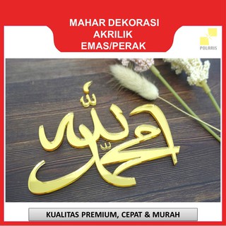 LAFADZ ALLAH MUHAMMAD ARABIC AKRILIK KILAP EMAS/PERAK UKURAN 12 CM DEKORASI MAHAR LASER