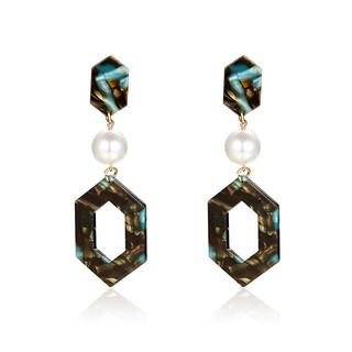 LRC Anting Tusuk Fashion Semi-solid Color Semi-marble Texture Acetate Plate Earrings F28XXX