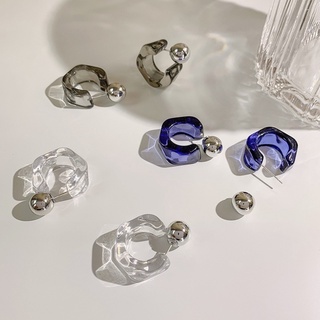 Silvery metal ball acrylic Transparan Huruf C Anting lady Korea