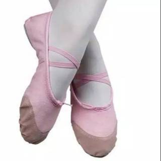 Sepatu Ballet Balet Kanvas Aksen Kulit Senam Gymnastic Pointe Split Sole Anak Dewasa