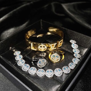 Goldkingdom Fashion Perhiasan Aksesoris Ready Stock Fashion Serbaguna Gelang Smile Penuh Berlian Senyum Wajah Terbuka Cincin Kepribadian Kecil Mikro Bertatahkan Gelang Cinta Gelang Perempuan