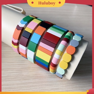 Hu Hu Hu Hu Hu Alat Bantu Pasang Kacamata♡ Gelang Manik-Manik Bentuk Persegi Warna Pelangi Untuk Pria Dan Wanita