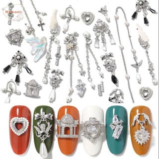 Mxbeauty Perhiasan Kuku Hati Keperakan Glitter Manicure Alat Payet Mewah Zirkon Fashion Rantai