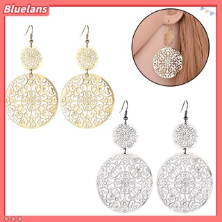 Anting Kait Panjang Bentuk Bulat Motif Ukir Bunga Hollow Gaya Vintage Untuk Wanita
