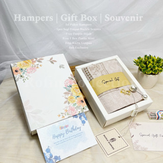 Hampers Gift Box Souvenir Hijab Isi 1pcs Segi Empat Buckle Scarves