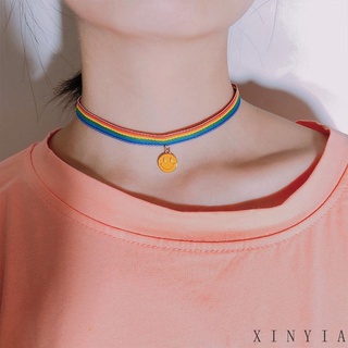 Gelang Rantai Klavikula Desain Smiley Face Water Drop Warna Pelangi Untuk Pasangan