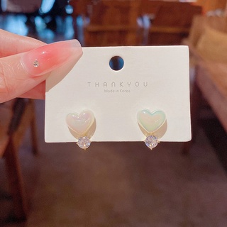 Anting Tusuk Bentuk Hati Aksen Mutiara Bahan Zircon Aneka Warna