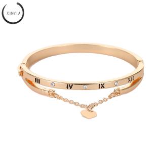 Luxury Gelang Stainless Steel Bracelets Bangles Female Heart Bracelet Rumbai Dengan Angka Romawi