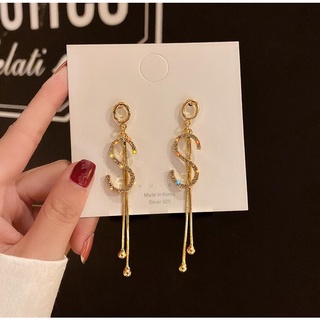 925 jarum perak Korea temperamen alfabet huruf anting-anting penuh Berlian S rumbai anting-anting ni