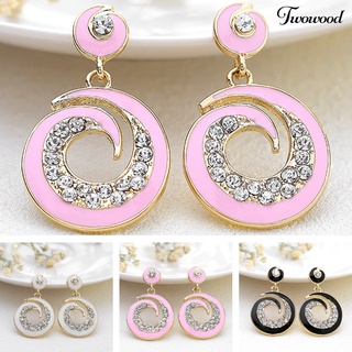 1 Pasang Anting Berlian Imitasi Bentuk Bulat Warna Kontras Bahan Stainless Untuk Wanita