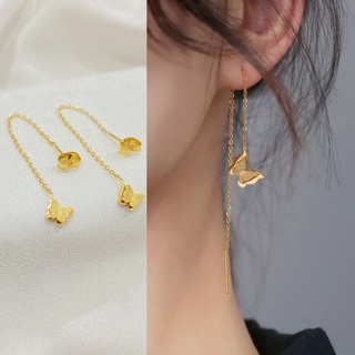 Y392【Pengiriman di tempat】Anting Korea Wanita Panjang Anting Cantik Kupu Kupu Zircon Lapis Emas Anting Panjang Perhiasan Wanita