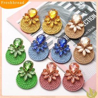 < Freshbread > Vintage Kain Bunga Berlian Imitasi Liontin Anting Wanita Ear Studs Dekorasi Pesta