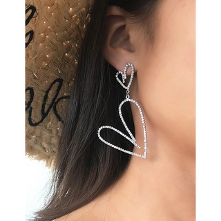 LRC Anting Tusuk Fashion Silver Fringed Full Diamond Love Earrings F87887