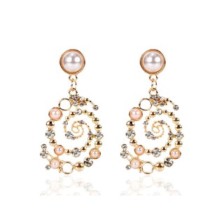 LRC Anting Tusuk Fashion Golden Alloy Diamond Pearl Spiral Earrings D71634