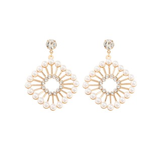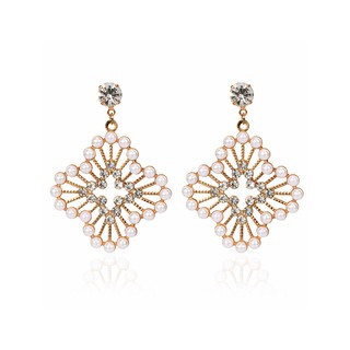 LRC Anting Tusuk Fashion Golden Alloy Diamond And Pearl Square Geometric Earrings K10064