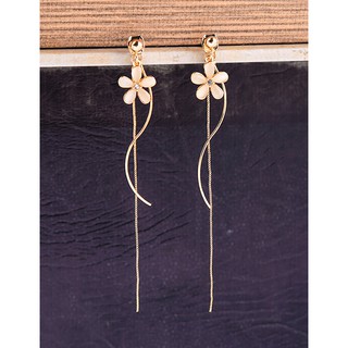 LRC Anting Tusuk Fashion Gold S925 Sterling Silver Diamond Flower Tassel Earrings F95542