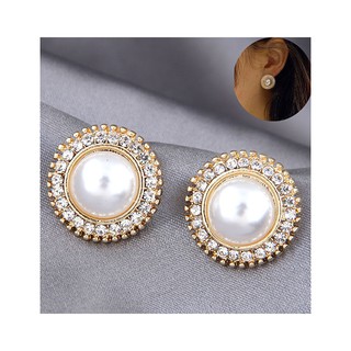 LRC Anting Tusuk Fashion Gold Color Diamond And Pearl Round Alloy Earrings A61834
