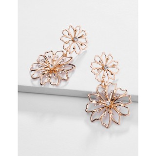 LRC Anting Tusuk Fashion Gold Openwork Gemstone Diamond Multi-layer Flower Earrings D53205
