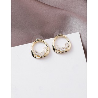 LRC Anting Tusuk Fashion Golden 925 Silver Pin Circle Gold Plated Diamond Stud Earrings D59656
