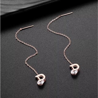 Anting Drop Titanium Rumbai Model Huruf D Diamond Artifisial