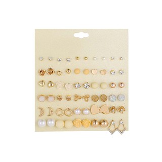 LRC Anting Set Fashion Color Bow And Pearl Stud Earrings Set (30 Pairs) F70860