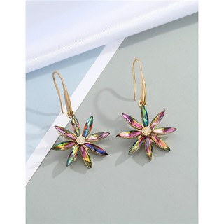 LRC Anting Gantung Fashion Asymmetrical Small Daisy Flower Alloy Contrast Color
